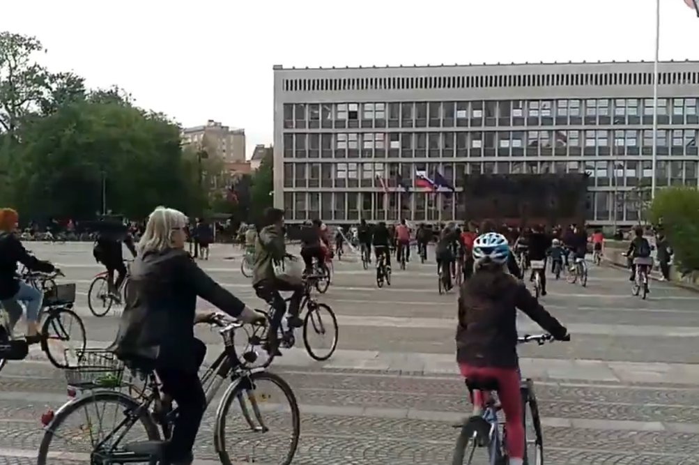 Včeraj pa so se protestniki s kolesi podali po centru Ljubljane. Protestu, organiziranem po družbenih omrežjih, proti omejevanju svobode v času epidemije novega koronavirusa, se je pridružilo več deset ljudi. Iz več zapisov je lahko razumeti, da so ljudi na kolesa v še večjem številu pognala tudi razkritja oddaje Tarča. Nase so udeleženci opozarjali z zvonjenjem, nekateri so na kolesa pritrdili transparente, drugi so žvižgali.