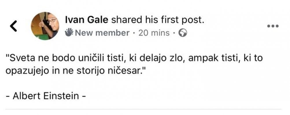 IVAN GALE: "Sveta ne bodo uničili tisti, ki delajo zlo, ampak tisti, ki to opazujejo in ne storijo ničesar" (FOTO, VIDEO)