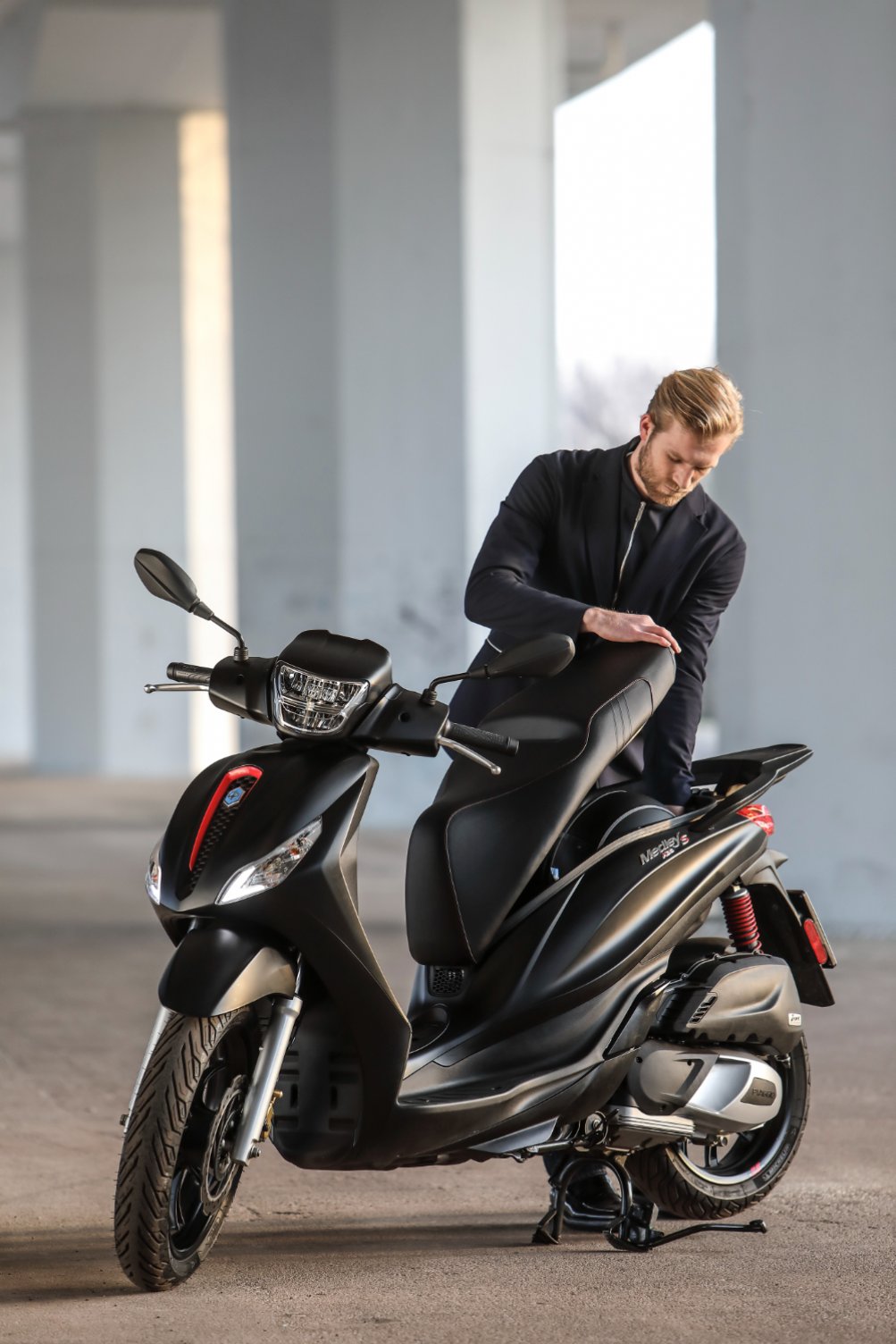 Za vsakodnevne nakupe v trgovini je primeren Piaggio MEDLEY 125, ki ima veliko prostora pod sedežem, v kombinaciji s kovčkom pa boste pripravljeni tudi za vsakodnevne aktivnosti in udobno vožnjo na visokih kolesih.