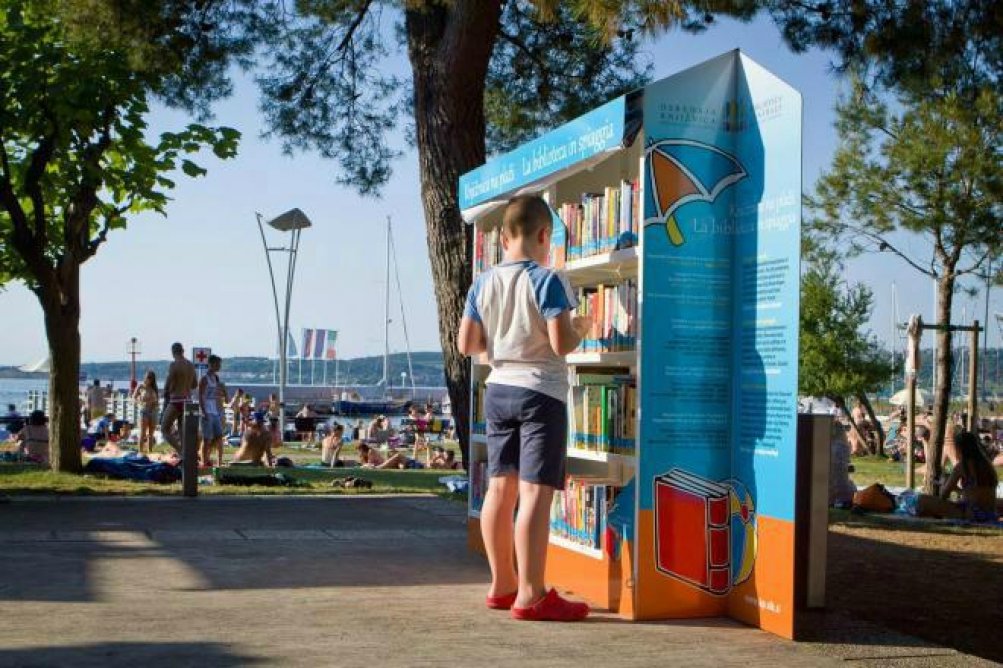 KNJIŽNICA NA PLAŽI PREŠLA OKVIRE SLOVENSKE OBALE: Od julija bodo brali tudi kopalci v Novigradu
