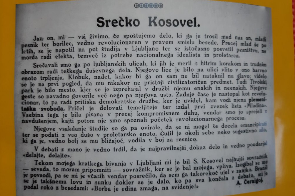 "Pesniški strateg revolucionarne akcije," je o Kosovelu zapisal Lev Kreft. Njegov oče, Bratko Kreft, je takole opisal zadnje srečanje z bolnim Srečkom. Želel je dobiti njegov prispevek za objavo v reviji Mladina, ki jo je urejal. Ker je Srečko odlašal, je šel Kreft do njega, da bi ga pregovoril, naj mu vendar da kaj za številko, "saj brez njegovega prispevka ne sme iziti".