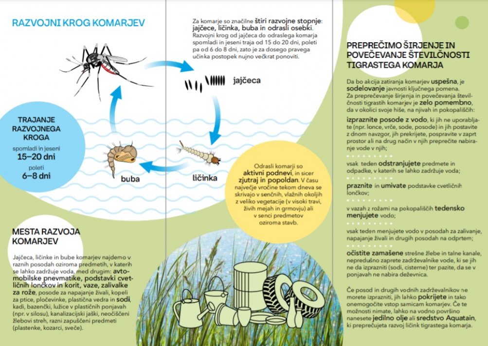 Sezona komarjev že trka na vrata. Ti insekti so za ljudi nadležni predvsem zaradi njihovega agresivnega hranjenja, ki pa gostiteljem povzroča motečo srbečico in alergijske odzive na pike. Ker se samice hranijo s krvjo ljudi in toplokrvnih živali, lahko prenašajo tudi različne virusne bolezni. Občine slovenske Istre so se zato tudi letos odločile organizirati preventivno akcijo zatiranja ličink tigrastih komarjev, ki bi zmanjšala oziroma omejila razmnoževanje teh insektov.