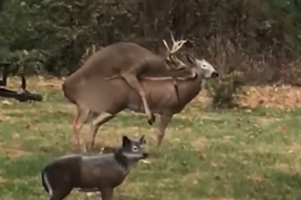 Videoposnetek jelena, ki naskoči lažno srno, tej pa ob tem odpade glava, je postal uspešnica na družbenih omrežjih. Njegova reakcija je namreč fantastična.