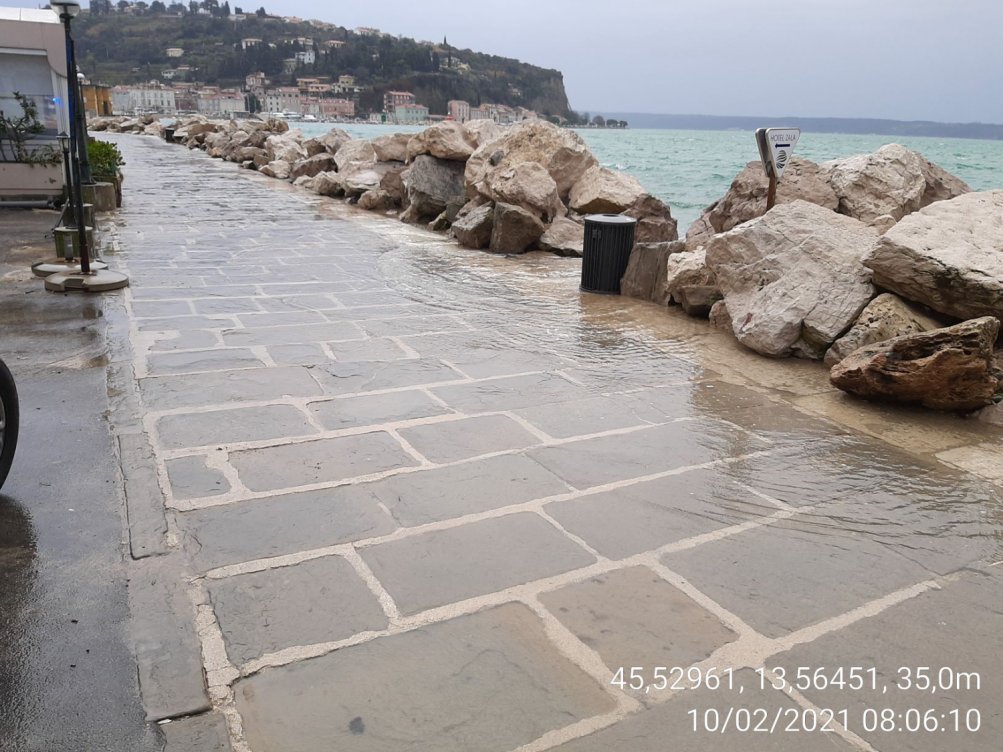 Kot nam je pojasnil poveljnik piranske civilne zaščite Robert Zirnstein, je bilo zjutraj vključeno alarmiranje zaradi povišane morske gladine na posameznih delih. "Največ vode je bilo med ovinkom med muzejem in gledališčem ter na prvem delu nabrežja, torej med Hotelom Piran in gostiščem Riva," pojasnjuje. Na cestišču je bilo približno pet centimetrov vode, "v mandraču mogoče celo 15 centimetrov".