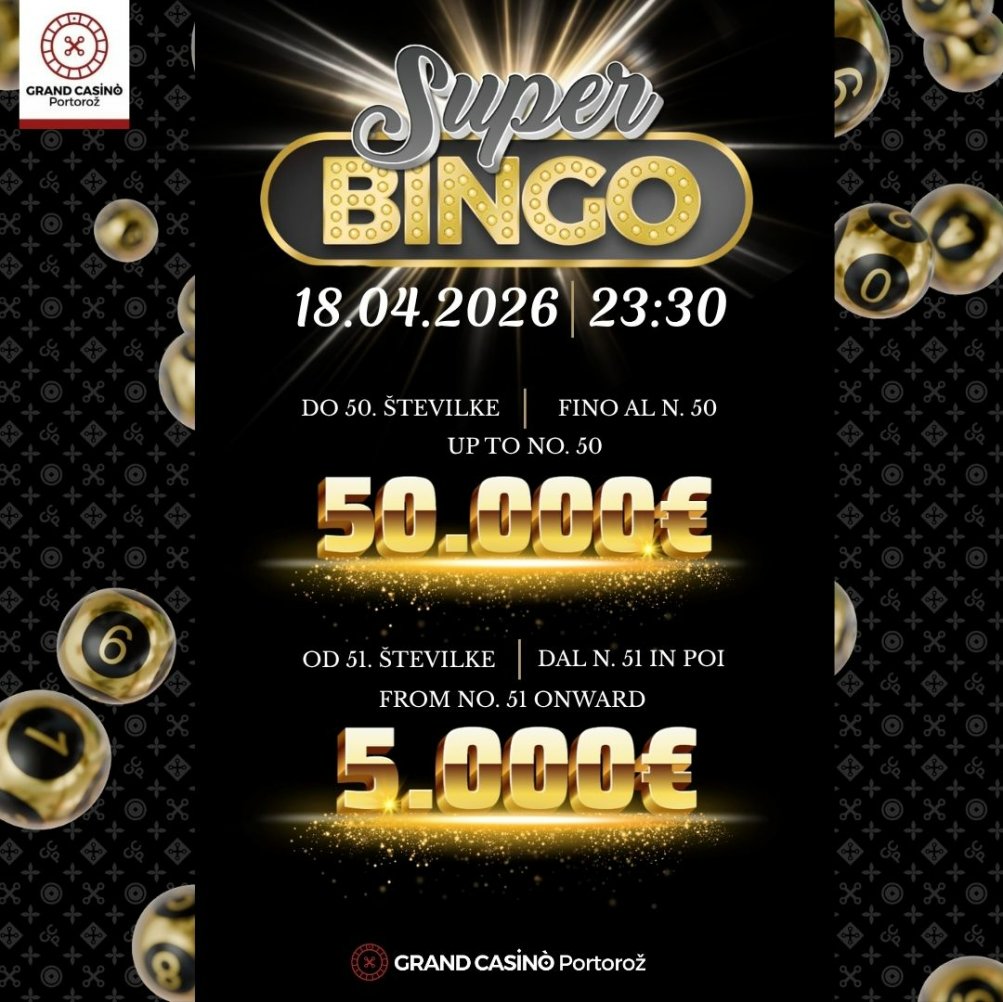 Svoje mesto v aprilskem dogajanju ohranja tudi priljubljeni Bingo, ki ostaja stalnica večernih ur. Od nedelje do srede bo na sporedu ob 22. uri, ob četrtkih kar dvakrat, in sicer ob 22.00 in 23.30, ob petkih in sobotah pa ob 23.30. Poseben vrhunec pa prihaja v soboto, 18. aprila 2026, ko bo ob 23.30 na sporedu Super Bingo. Takrat bo napetost še toliko večja, saj do 50. številke ostaja progresivni znesek v višini 50.000 evrov, po 51. številki pa se ob prejetem Bingu podeli 5.000 evrov. To bo eden izmed vrhuncev meseca, ki ga ljubitelji igre zagotovo ne bodo želeli zamuditi.