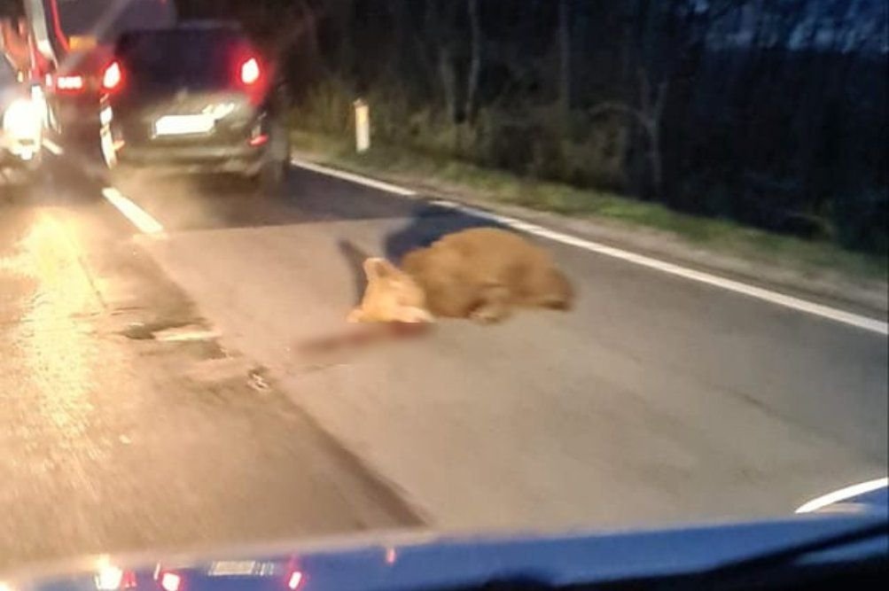 Na cesti med Turjakom in Pijavo Gorico je danes okoli 6. ure voznik z osebnim vozilom trčil v odraslega medveda, ki je na kraju poginil. Policisti ob tem opozarjajo, da je v takšnih primerih treba ravnati skrajno previdno, še posebej če pride do poškodovanja medvedjega mladiča. Če to ni nujno, naj vozniki ne zapuščajo vozil, takoj naj obvestijo policijo. Na Trentinskem pa so ujeli medvedko, ki je ta mesec v gozdu ubila 26-letnega tekača. Kot so davi sporočile pristojne oblasti te italijanske zvezne dežele, so medvedko Jj4 ponoči ujeli gozdarji in jo namestili v ogrado z elektriko v centru za oskrbo živali Casteller v Trentinu, poročajo tuje tiskovne agencije.