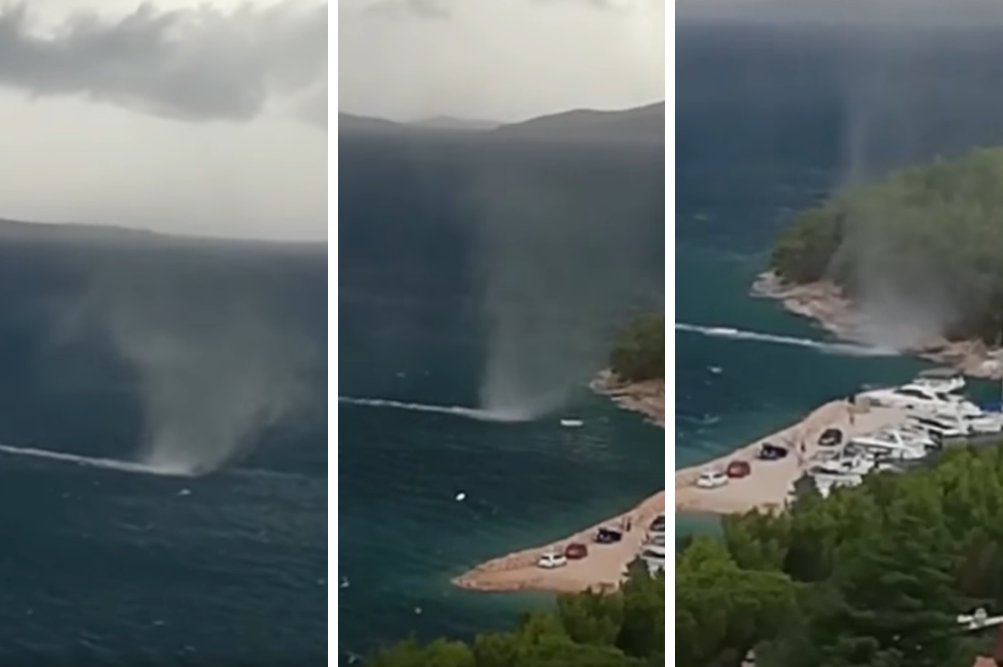 Ogromna vodna tromba je v torek okoli 18. ure nastala nad morsko gladino in se zagnala proti obali ter tam privezanim plovilom. Ko je že delovalo, da bo uničila vse pred seboj, se je razpihala v malo močnejši veter.