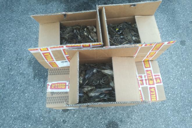 V petek, 5. oktobra, je Mobilni carinski oddelek Ljubljana na postajališču Lukovica ustavil voznika avtobusa s prikolico, pri katerem so med pregledom prtljage našli 15 škatel z mrtvimi pticami. Natančen pregled škatel je opravila varstvena ornitologinja iz Društva za opazovanje in proučevanje ptic Slovenije. V škatlah je zabeležila 1349 osebkov ptic, ki so pripadali 13 vrstam.
