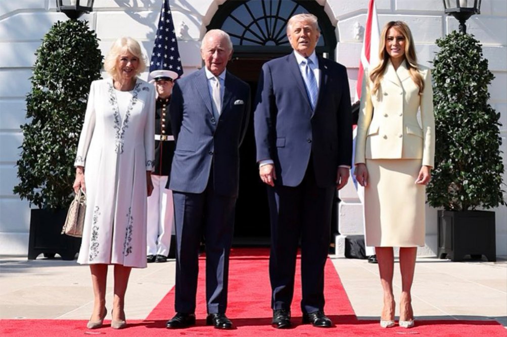 Kralj in kraljica Camilla sta se včeraj zvečer udeležila državniške večerje v Beli hiši, kjer sta ju danes sprejela Trump in prva dama Melania. Izmenjali so si darila in opravili več pogovorov, že v ponedeljek pa si je kraljevi par ogledal tudi čebelnjak, ki ga je dala postaviti prva dama ZDA.